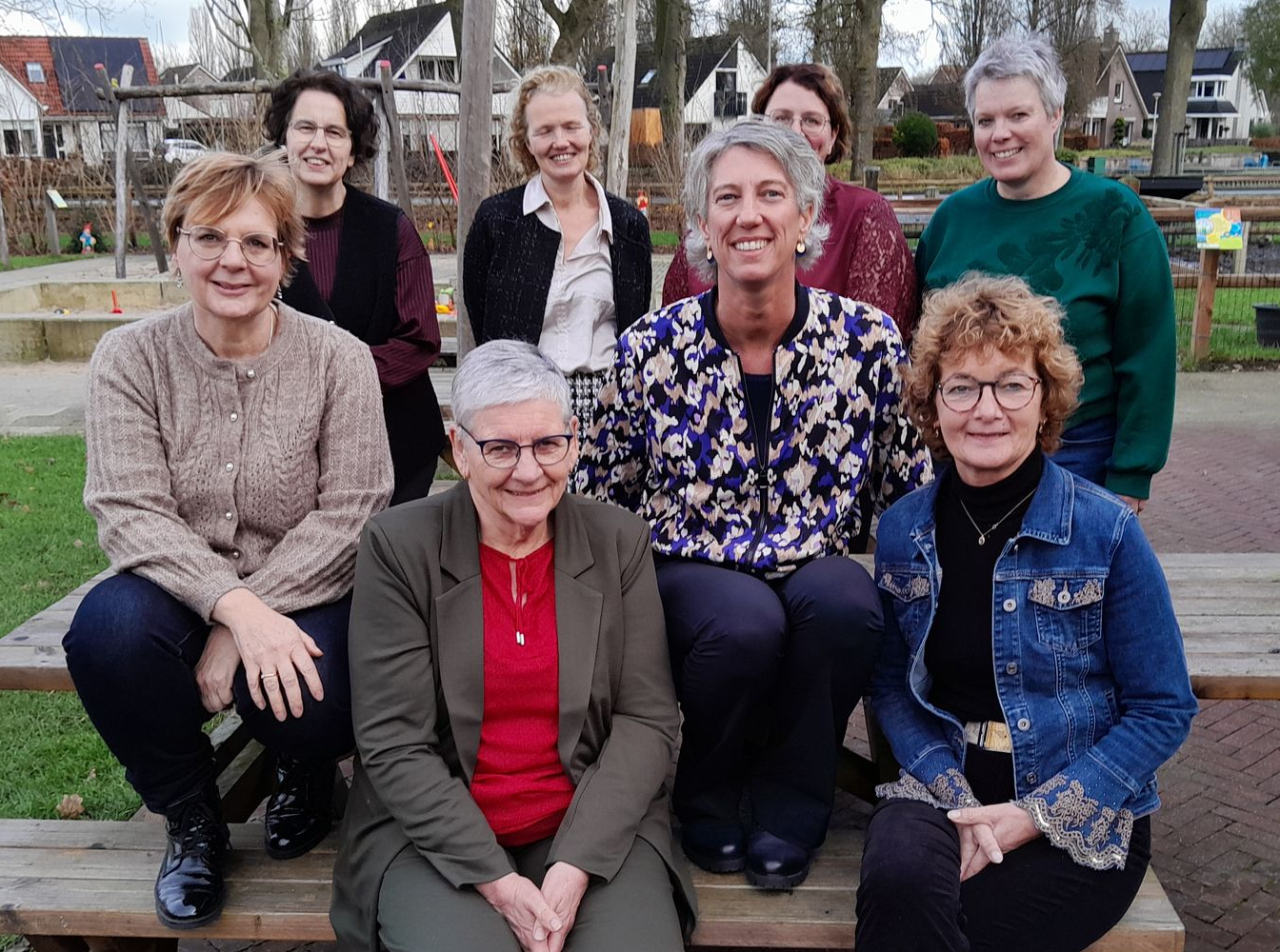 Foto: achterste rij vlnr.; Wilma, Annekie, Annemiek, Irene. Midden: Claudia, Anneke. Voorste rij: Ineke, Hermien.